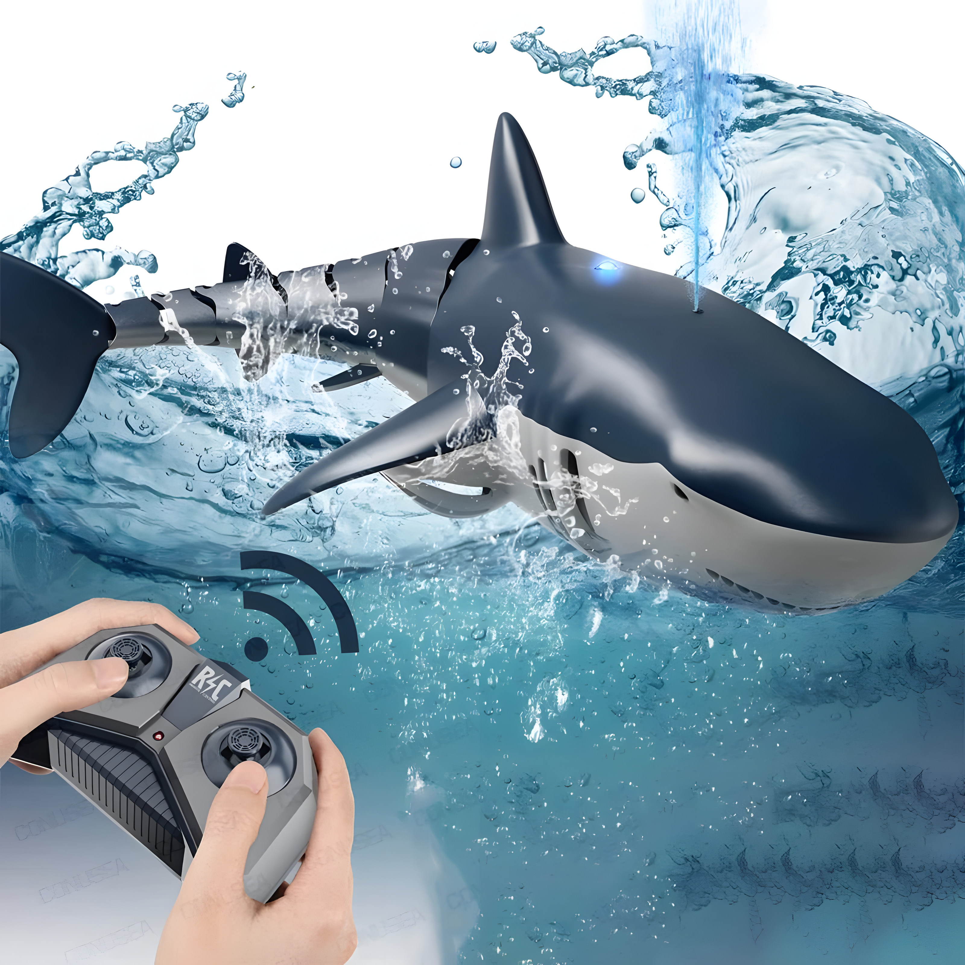 🦈 Swim across the ocean with the Bennol Remote Control Shark Toy! 🚤 1:18 scale high-fidelity design + flexible tail for 360° all-around swimming – just like a real shark! ⚡ Dual propellers provide fast movement, while water jets and LED lights add excitement (especially suitable for nighttime play)! 💦 Waterproof remote control, one-button demonstration – easy for children aged 6 and up to use!