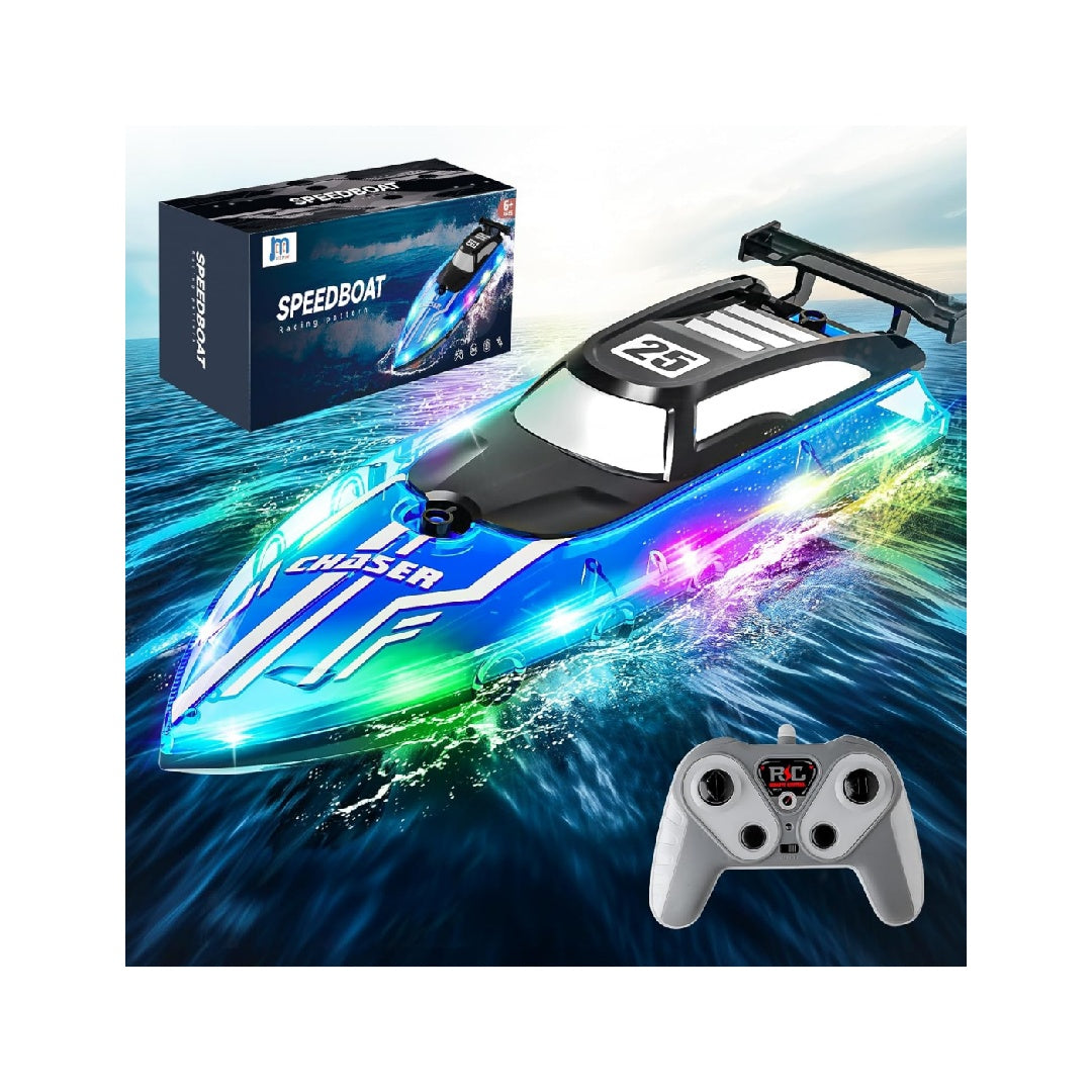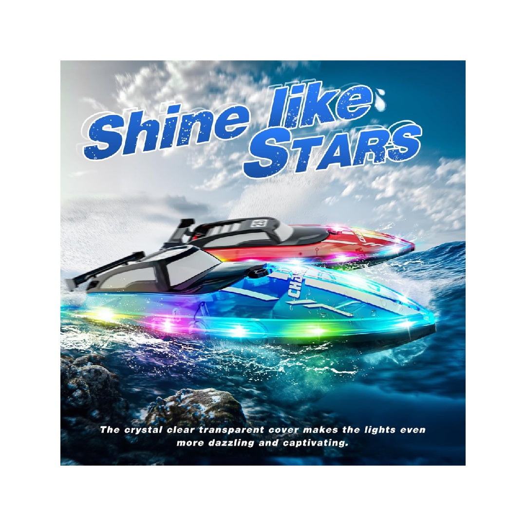 Children's remote control boat with LED lights, 2.4GHz remote control racing boat.